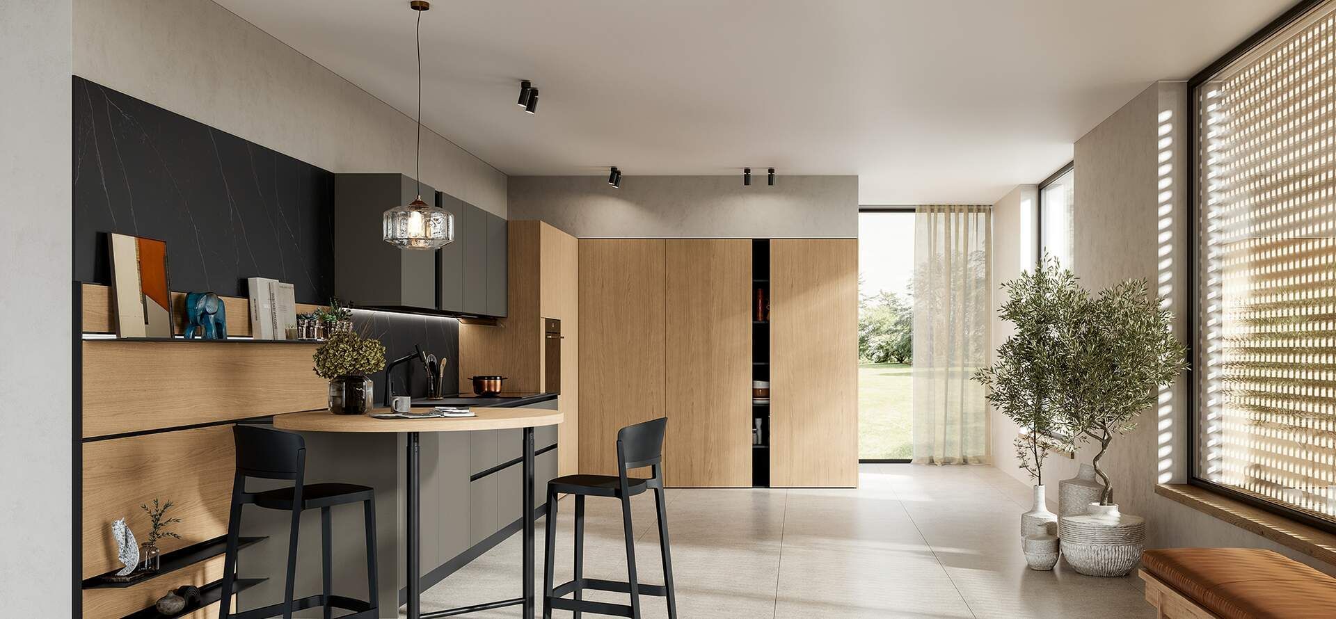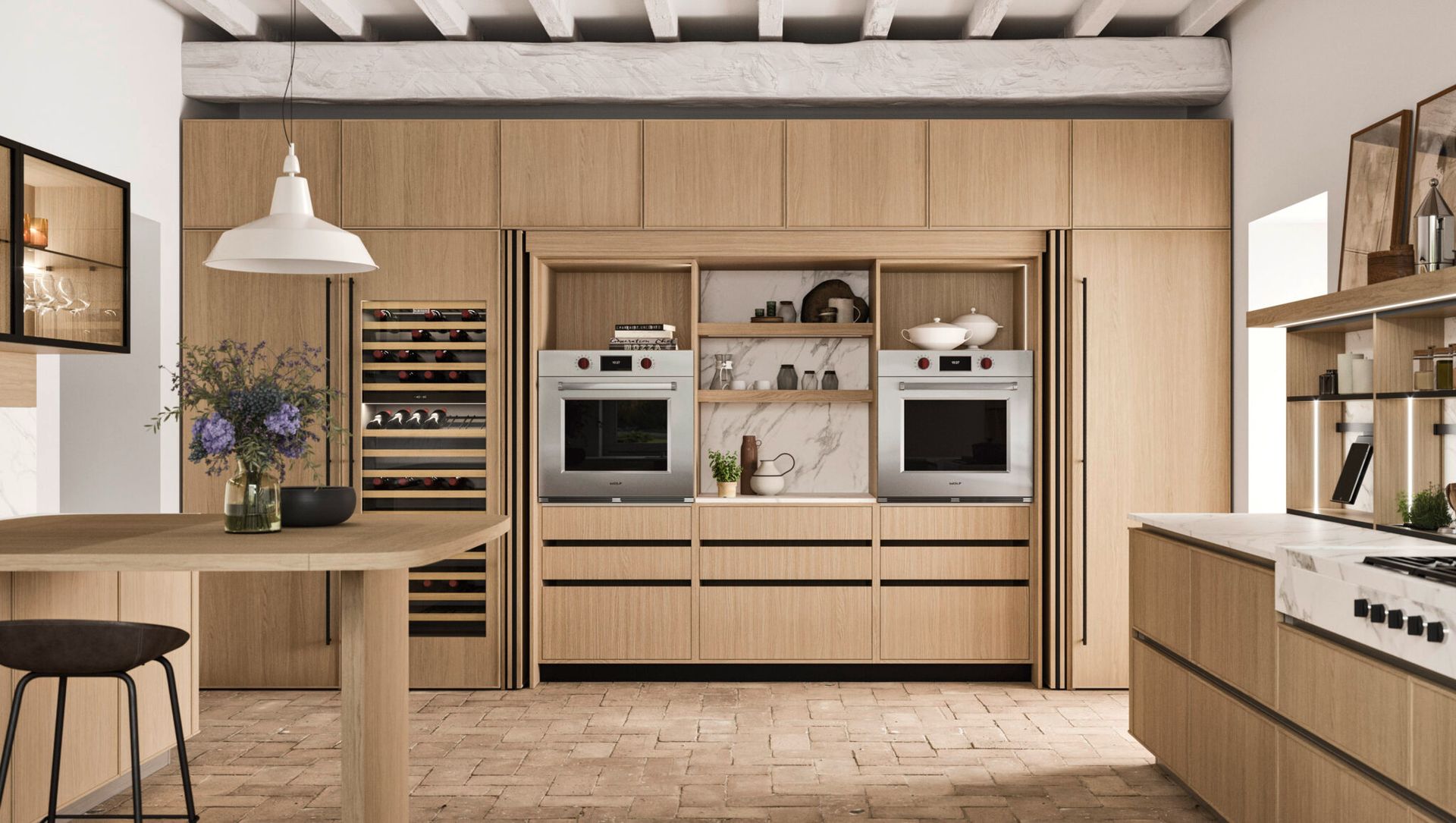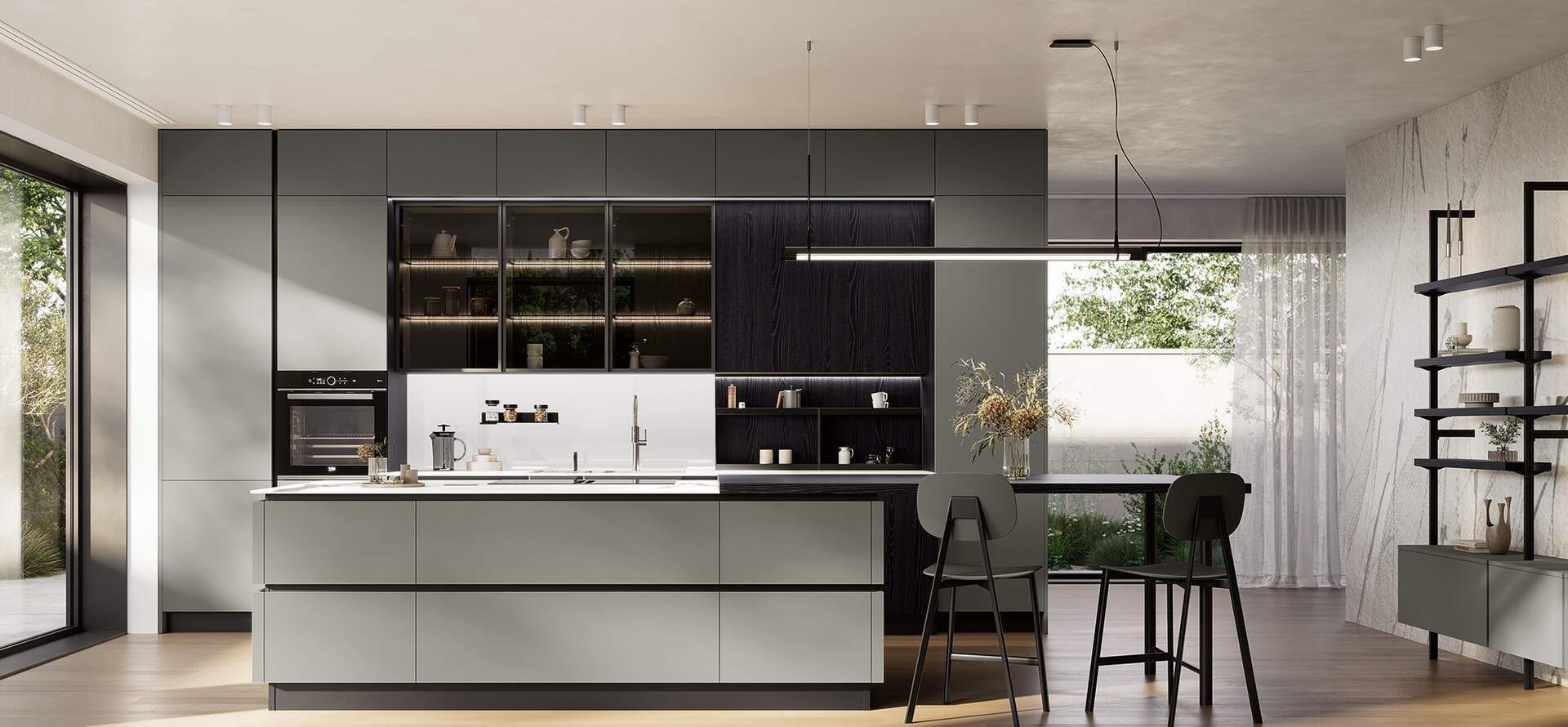 Qualunque sia il tuo stile, nel nostro showroom potrai scoprire una vasta gamma di cucine su misura, capaci di adattarsi a qualsiasi esigenza di stile, spazio e materiali. Ti guideremo nella progettazione, proponendo soluzioni che si inseriscono perfettamente sia in ambienti open space moderni che in ambienti separati e più intimi. Le nostre cucine, disponibili in vari stili, possono essere arricchite con dettagli come isole e penisole, per rispondere a ogni tua necessità estetica e funzionale.